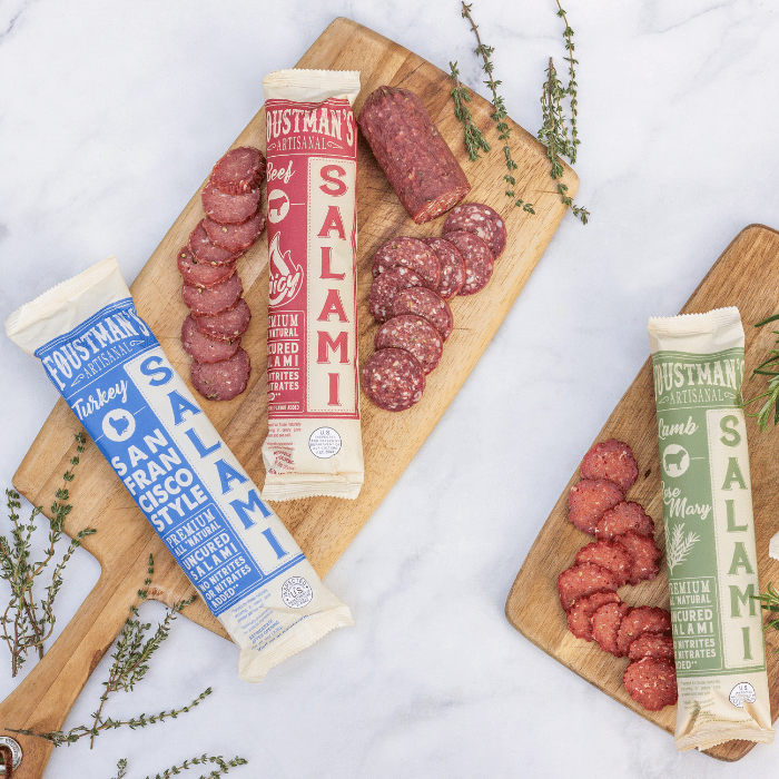 Our salami is made the old-school way, using sea salt and celery juice powder. We never use chemical nitrates or nitrates.